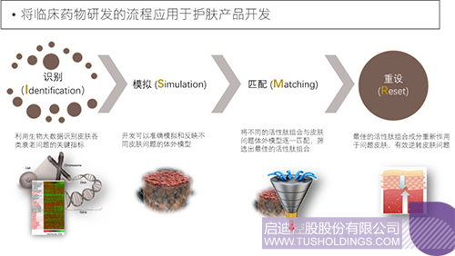 二、 功效成分篩選平臺(tái)。將臨床藥物研發(fā)的流程應(yīng)用于護(hù)膚產(chǎn)品開發(fā),針對不同皮膚衰老問題,建立集識(shí)別(Identification)、模擬(Simulation)、匹配(Matching)以及重設(shè)(Reset)為一體的I.S.M.R的流程。在此基礎(chǔ)上與分泌型天然多肽因子庫有機(jī)結(jié)合,目標(biāo)導(dǎo)向化高效篩選創(chuàng)新型多肽成分組合。