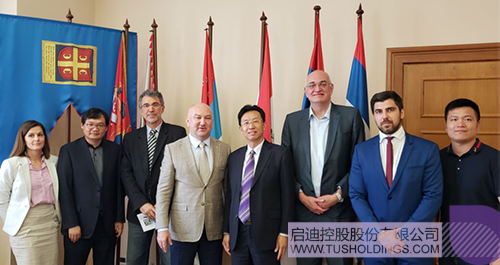 塞爾維亞國家創(chuàng)新和科技發(fā)展部部長奈納德·波波維奇(左四)會見啟迪控股代表團