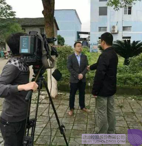 江文浦(中)接受媒體采訪