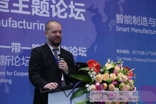 瑞典浣貝爾自動化公司創(chuàng)始人兼首席執(zhí)行官華山發(fā)言