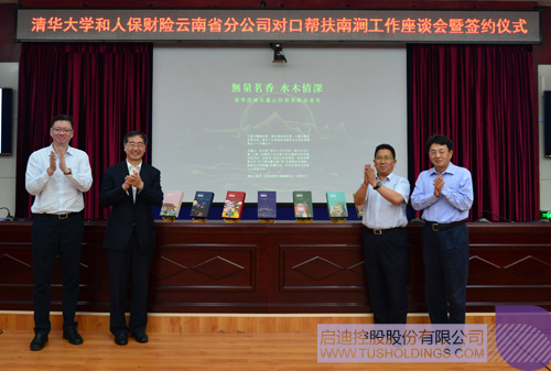 簽約儀式后,由云南啟迪協同啟迪科服成立的無量山啟迪大健康科技有限公司“土林鳳凰”新產品正式發(fā)布,姜勝耀、吉向陽、龍大偉、人保財險云南省分公司總經理雙磊(清華校友)共同為新產品揭幕。作為啟迪精準助力南澗發(fā)展“六個一”之茶產業(yè)發(fā)展舉措,此次新品以“無量茗香 水木情深”為主題,由清華大學美院師生進行設計。