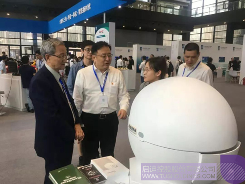 清華大學(xué)原黨委副書記胡顯章、浙江清華長(zhǎng)三角研究院院長(zhǎng)王濤,參觀啟迪之星展位。