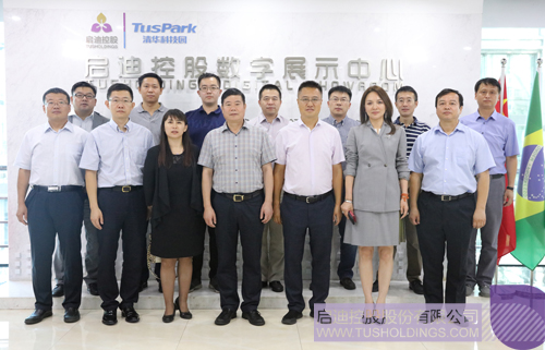 薛廷伍總經(jīng)理(前排左四)一行參觀啟迪控股數(shù)字展廳