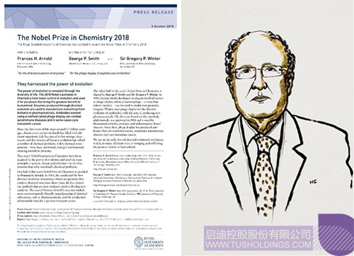 瑞典皇家科學(xué)院官方宣布本年度諾貝爾化學(xué)獎(jiǎng)歸屬,右圖為劍橋大學(xué)三一學(xué)院院長Sir Gregory Winter漫畫肖像