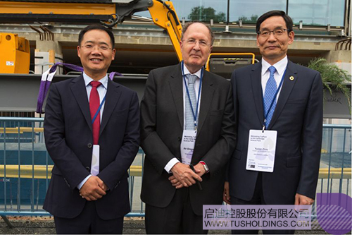 三一學(xué)院院長Sir Gregory Winter(中)、啟迪控股董事長王濟(jì)武(左)與國新國際董事總經(jīng)理周育先(右)共同見證生命科技創(chuàng)新中心封頂儀式